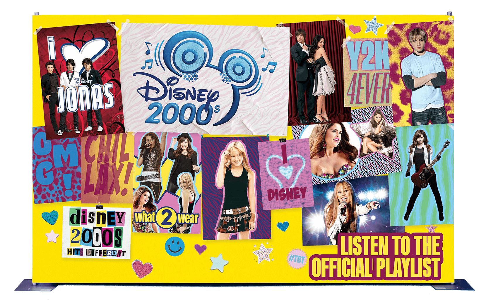 In collaboration with my team members at WMA, I contributed to an enormous suite of content for a year-long campaign to revive attention on nostalgic hits in Disney's catalog from the early 2000s. This included creating an unique "Disney 2000s Hits Different" logo, brand guidelines, and hundreds of individual assets for use across socials, streaming platforms, merchandise, popup events, and billboards. Visuals lean heavily into brash patterns, bold color pairings, and eclectic typeface collages that evoke scrapbooks and diaries.